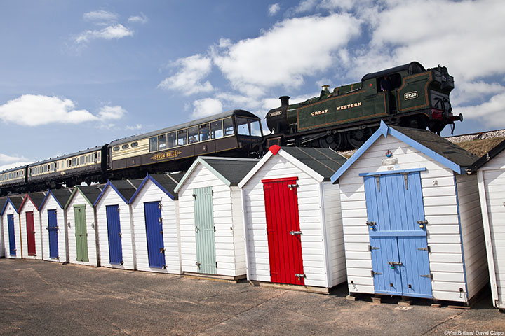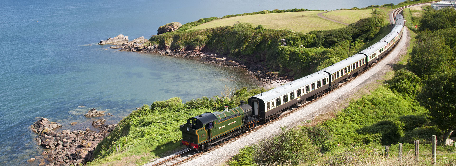Togturen starter fra London og gennem de sydengelske landskaber til Devon og langs med den Engelske Rivieras smukke kyst til Torquay, der ligger på Englands “Riviera” med strande, palmer og ferie-stemning. Byen har siden viktoriatiden været et af Storbritanniens populæreste feriedestinationer. Dengang spadserede man langs promenaden, badehuse blev kørt ned til stranden, og alle, der var noget ved musikken, havde en attraktiv villa med udsigt over havet. De berømte syv bakker, der ses i baggrunden, stranden, bugten og havet gør stedet til noget så flot, som man finder ved den franske riviera. Et ganske smukt sted!
